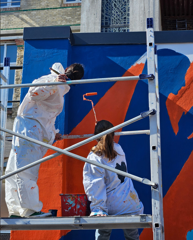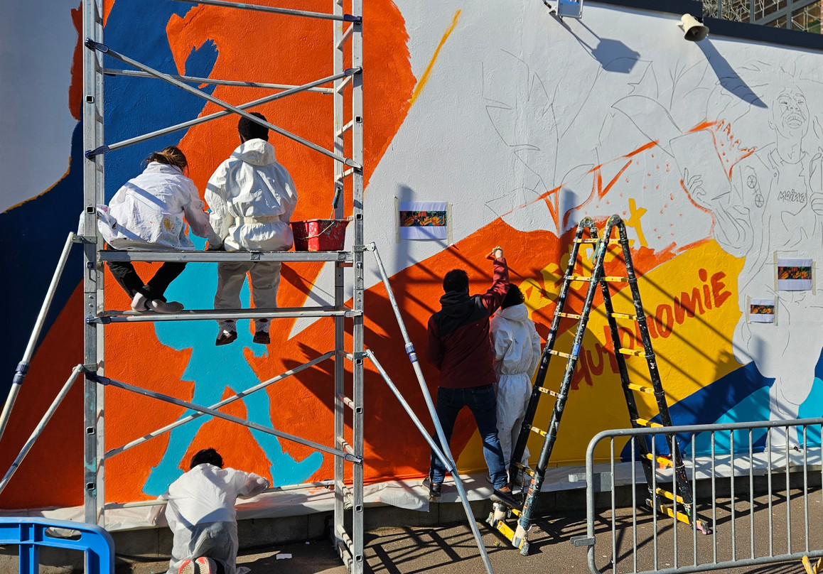 Le collége Notre Dame de providence situé à Enghien les bains a souhaité réaliser une fresque sur ce grand mur afin de marquer son identité et ses valeurs dans une oeuvre artistique participative. Au total ce sont 250 élèves qui ont participé à la réalisation de cette fresque encadré par nos graffeurs professionnels. Chacun en fonction de ses capacité aura réaliser une partie de l'oeuvre , une expérience qui permet à chacun de prendre confiance en soi, découvrir un métier tout en renforçant le sentiment d'appartenance à l'établissement.