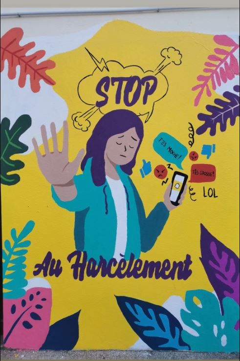 Il nous a fallu une semaine pour peindre cette grande fresque avec ce publique de jeunes en situation de handicap mental, aidé par leurs éducatrices le chantier a remporté un franc succès !