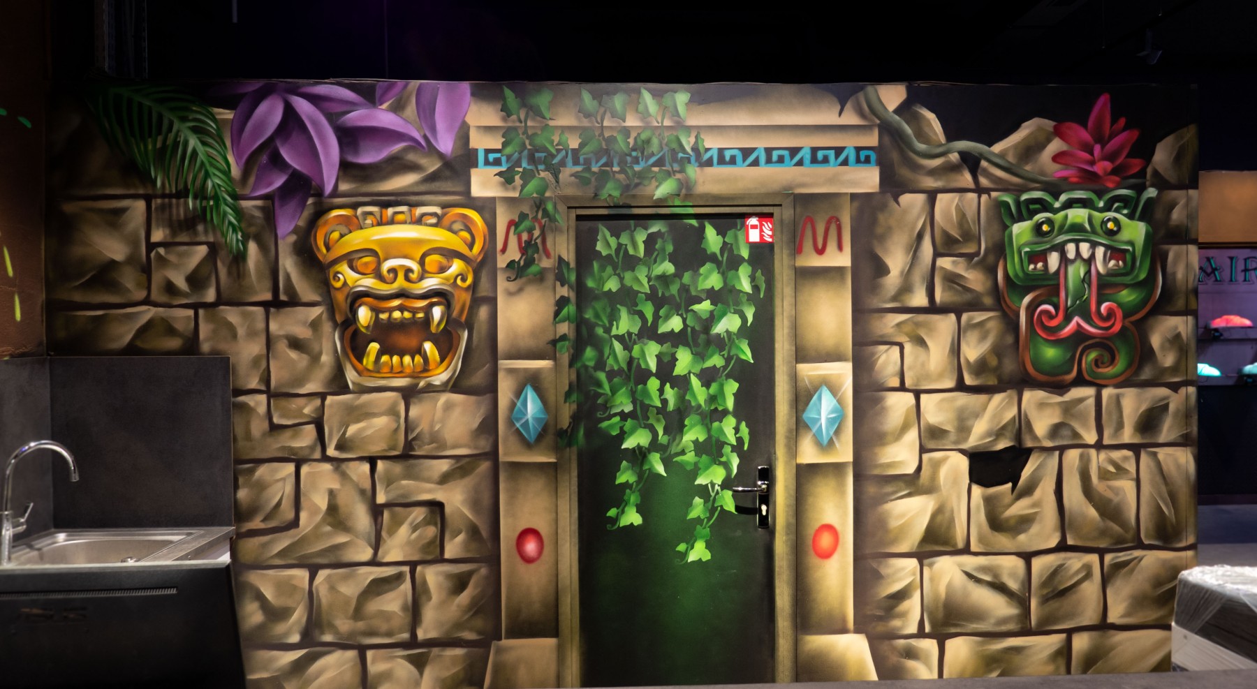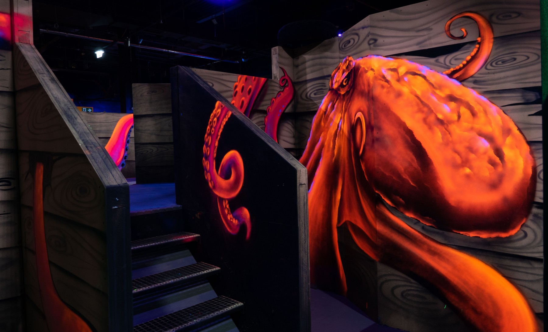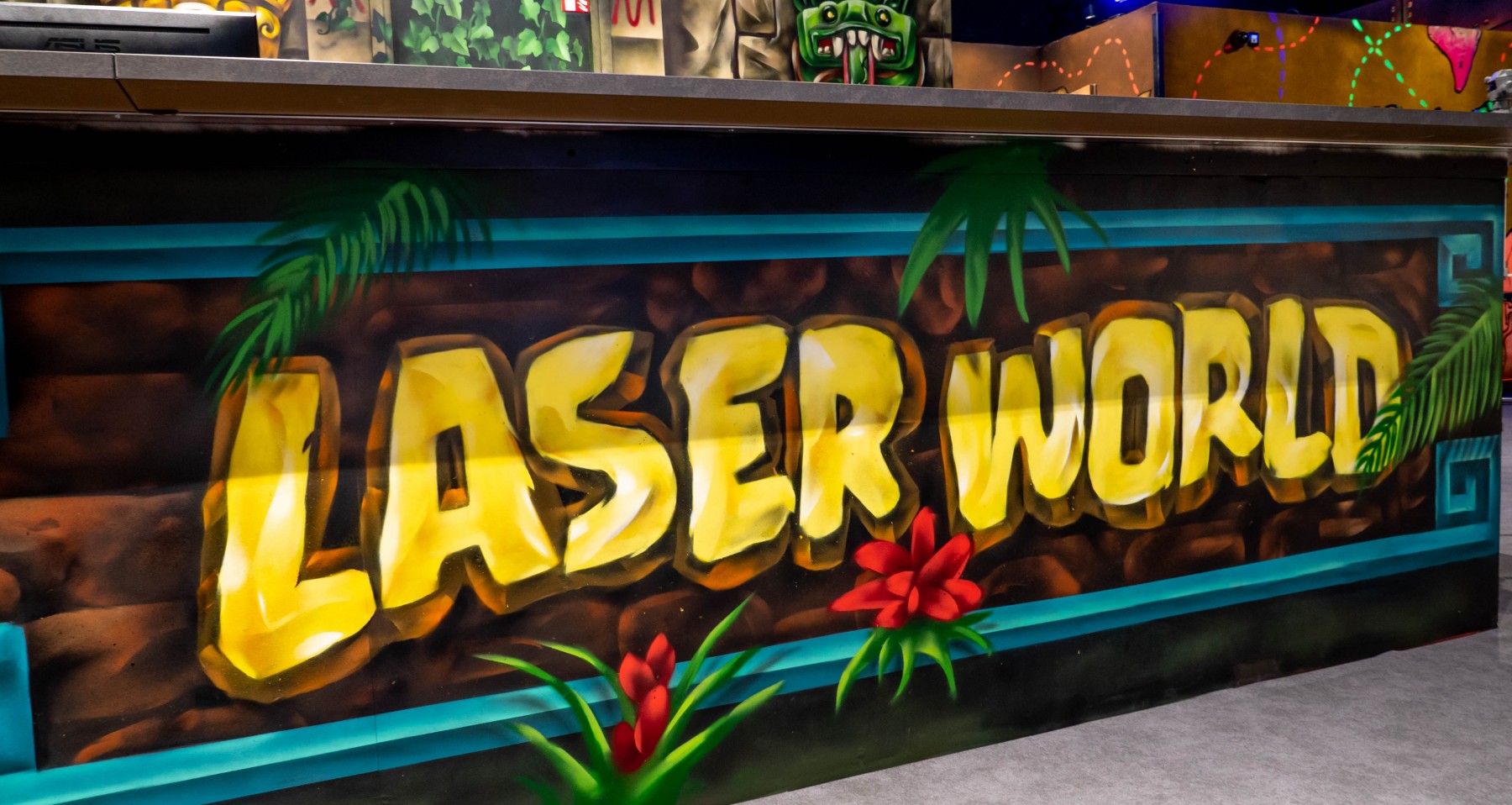 Décoration complète du Laserworld de O'parinor, ce complexe laser game de plus de 1000m2 a accueillis des fresques murales aussi diverses que possible afin de varié les univers pour offrir aux joueurs une expérience unique !