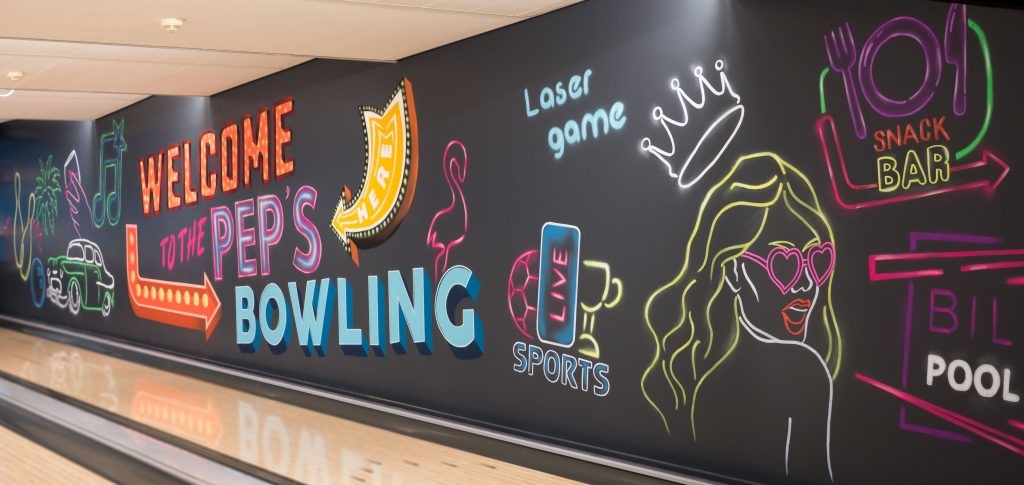 Le pep’s bowling cherchait à faire peau neuve, leur souhait : trouver une décoration qui colle aussi bien avec une ambiance tendance et sobre en journée qu’une ambiance boite de nuit pour les soirées rythmées !