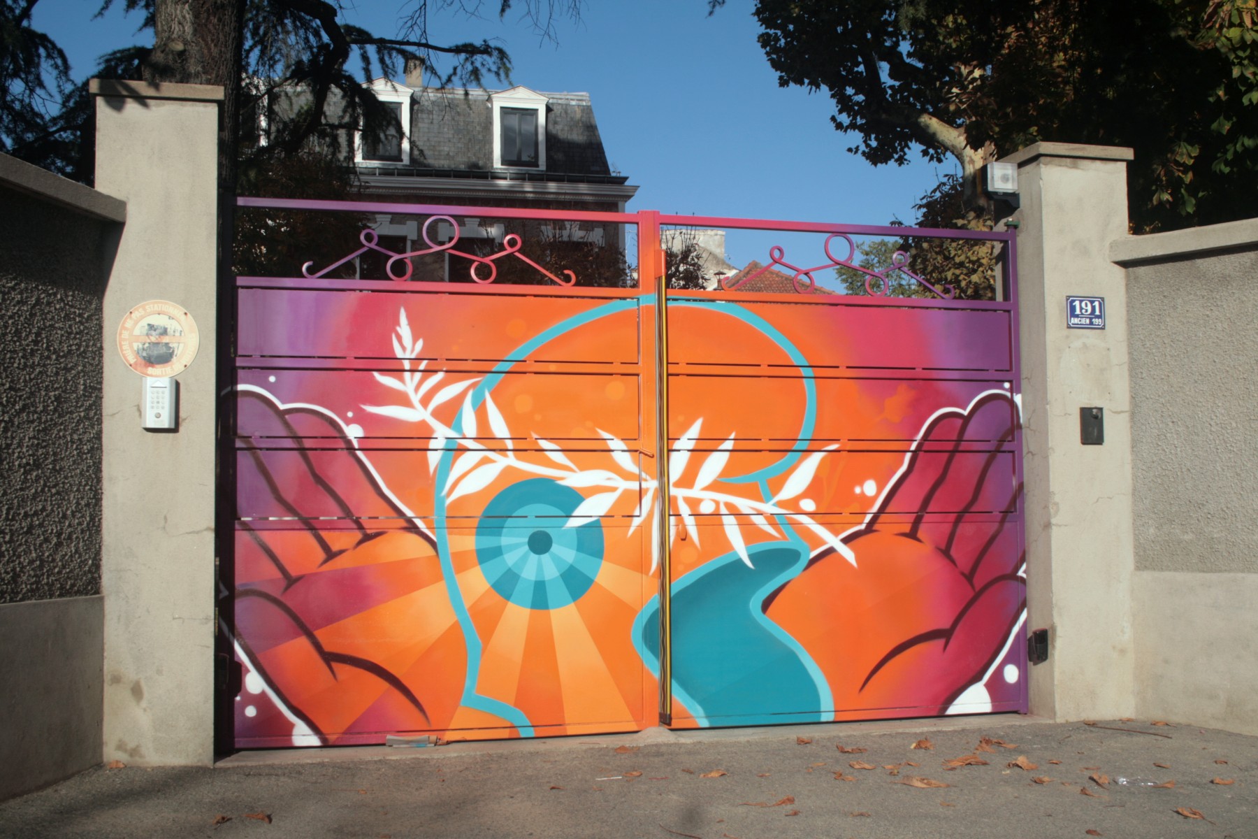 Le secours populaire nous a confié la réalisation d'une fresque sur une thème libre afin d'égayer l'entrée de leurs locaux.