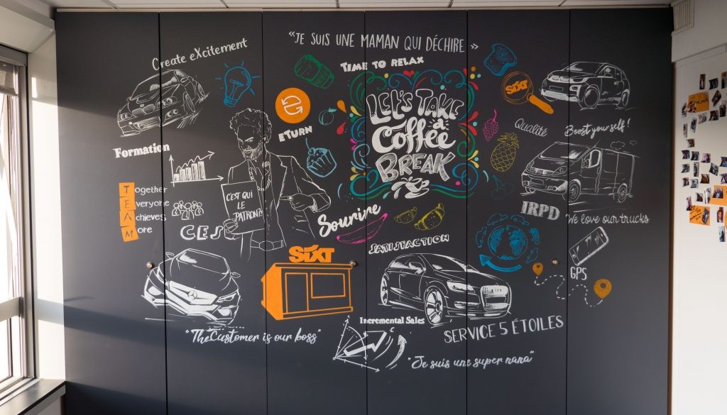 Nous réalisons des fresques dans la plupart des agences Sixt à travers la France afin de personnaliser leurs locaux en fonction des régions. Voici un extrait des réalisation de nos graffeurs dans des styles divers.